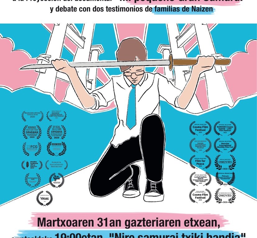 Desde las áreas de Igualdad y juventud del Ayuntamiento se ha organizado en la Casa de la Juventud (19.00 horas), la proyección del documental ‘Mi pequeño Gran Samurái’ con un debate y con dos testimonios de familias de Naizen, asociación de familias de menores transexuales.