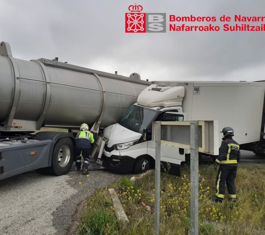 El espectacular accidente entre dos camiones se saldó, de manera milagrosa, con los dos conductores ilesos. El siniestro tuvo lugar en el km 89,5 de la carretera NA-134 que comunica Tudela con Mendavia a lo largo de 100 km. Sos Navarra movilizó a los bomberos del parque de Lodosa y a una patrulla de tráfico de la Policía Foral que se encargó de realizar el … Continúa leyendo Aunque parezca mentira los dos conductores resultaron ilesos
