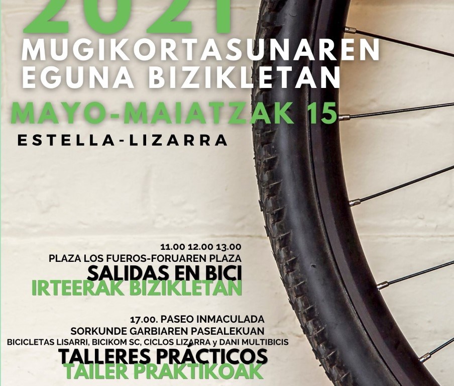 El Ayuntamiento de Estella-Lizarra ha organizado para este próximo sábado, día 15 de mayo, el I Día de la Movilidad en Bicicleta, en el que se han implicado de forma transversal distintas áreas y comisiones municipales con el objetivo de potenciar la movilidad sostenible y el uso de la bici urbana por la ciudad. Para esta jornada, que se ha presentado hoy al mediodía, se cuenta además con la colaboración de un grupo de jóvenes y de las cuatro tiendas especializadas en bicicletas de la ciudad: Ciclos Lizarra, Dani Multibicis, Bicikom y Bicicletas Lisarri.