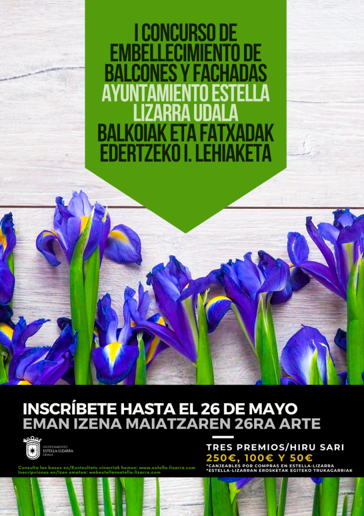 Las inscripciones se pueden realizar hasta el miércoles 26 de mayo enviando por email a webestella@estella-lizarra.com los datos personales de quien participa y un máximo de tres fotografías del balcón o fachada decorado.