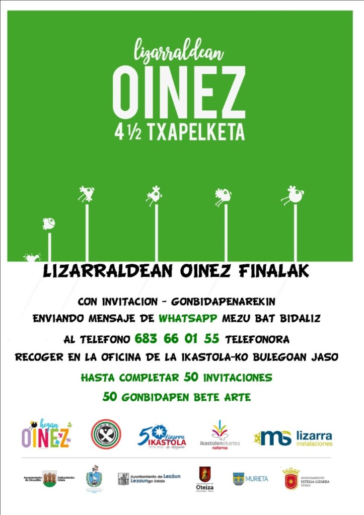Las invitaciones se podrán recoger en Lizarra Ikastola el jueves 20 de mayo. Lizarra Ikastola quiere aprovechar estas líneas para mostrar su agradecimiento al Club Lizar Jai, a los Ayuntamientos y la empresa Lizarra Instalaciones que han apoyado la iniciativa y a los pelotaris que han participado en el campeonato por la cercanía y el compromiso que han mostrado para con el euskera, el deporte vasco y Lizarra Ikastola.