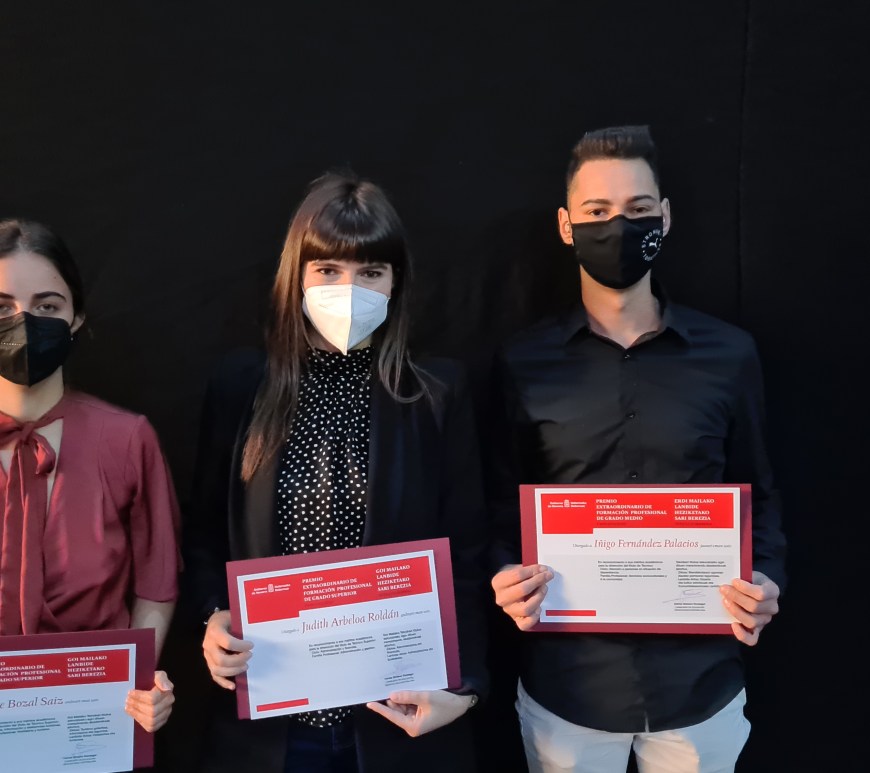 Esta semana en el Navarra Arena, tres de los cuatro alumnos/as premiados del Politécnico de Estella, han recibido el Premio Extraordinario de FP, por sus buenos resultados obtenidos en cada ciclo, de un total de 32 premiados en toda Navarra. Se trata de Leyre Bozal, realizó el ciclo formativo de grado superior de Guía, Información y Asistencias Turísticas, Judith Arbeloa, alumna del ciclo formativo de grado superior de … Continúa leyendo Cuatro alumnos del Politécnico de Estella premiados