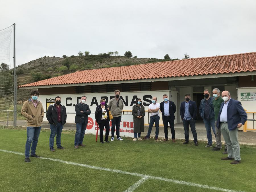 La delegación del Legislativo ha sido recibida por Leo Camaces, alcalde de Ayegui, Manuel Galdeano, concejal, Maxi Ros, presidente del C.D. Arenas, Maikel Casado, secretario del C.D. Arenas y Miguel Iglesias, directivo del club y concejal.