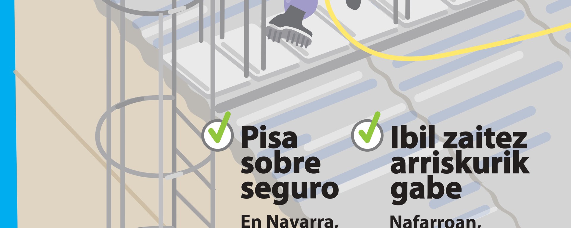 El Instituto de Salud Pública y Laboral de Navarra (ISPLN) ha lanzado una nueva edición de la campaña Pisa sobre seguro, que pretende prevenir los accidentes laborales por caídas desde tejados y cubiertas de naves y viviendas. La activación de la campaña coincide con la llegada de la época estival, momento elegido en muchas empresas, tanto por las buenas condiciones climatológicas como por la reducción de la carga productiva, para revisar, limpiar, renovar y hacer una puesta a punto de estas superficies en altura.