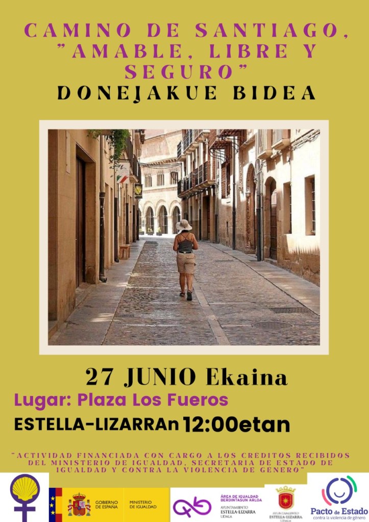 La próxima acción de este proyecto, que recibe apoyo económico del Estado (Ministerio de Igualdad y Secretaría de Estado de Igualdad y Contra la Violencia de Género) y que quiere velar por el cuidado de las peregrinas a su paso por la Ruta Jacobea, será el próximo 27 de junio, domingo, en la ciudad del Ega. Un encuentro para visibilizar a la peregrina y crear una red para que la iniciativa tome mayor fuerza y difusión.