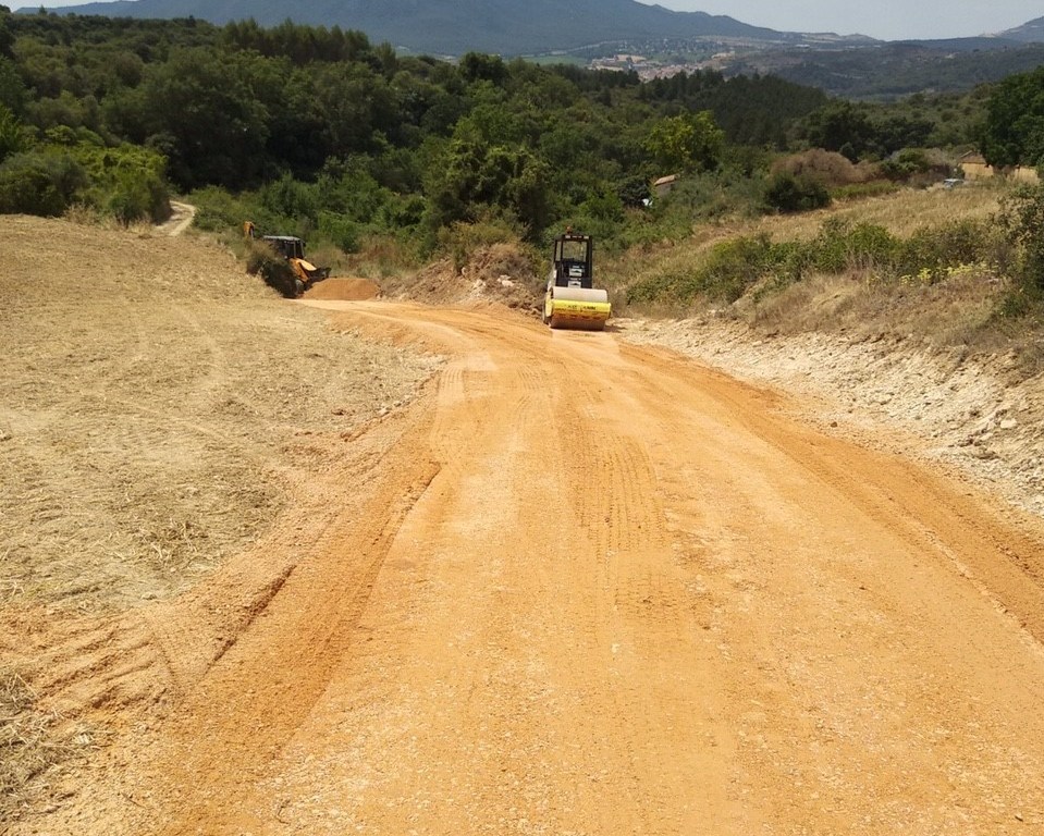Este tramo del camino tiene mucha pendiente y, con las lluvias, el agua había ido creando grandes surcos que limitaban el paso de vehículos. Lo que se ha hecho con maquinaria es perfilar el camino y darle pendiente hacia las parcelas, creando además pequeños badenes para que no baje todo el agua directamente y vuelva a estropear el camino. Después del perfilado se extendió una capa de ‘todo en uno’ compactada para mejorar el firme.