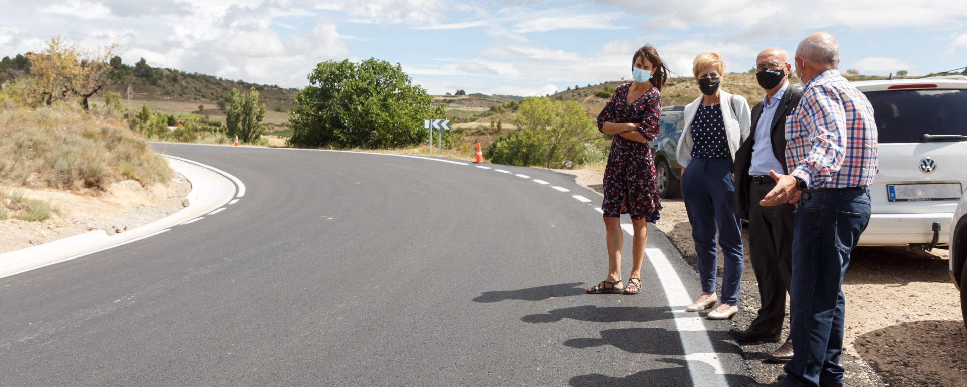 El consejero de Cohesión Territorial, Bernardo Ciriza; la alcaldesa de Viana, Yolanda González; el alcalde de Aras, Jesús Carlos Fernández, y el director general de Obras Públicas e Infraestructuras, Pedro López, han visitado recientemente la renovación de la carretera que se ha realizado entre los puntos kilométricos 1+360 y 5+600, desde Viana hacia Aras.