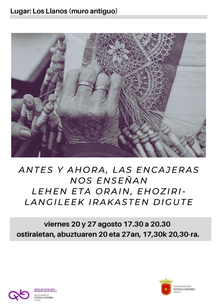 ENCAJERAS. Las encajeras de Estella-Lizarra muestran sus destrezas y habilidades con el encaje de bolillos, una tradición histórica realizada fundamentalmente por mujeres, que tiene sus orígenes en el siglo XVI y llega hasta nuestros días. Una tradición que las mujeres han pasado de generación a generación, haciendo genealogía de los saberes realizados mujeres.