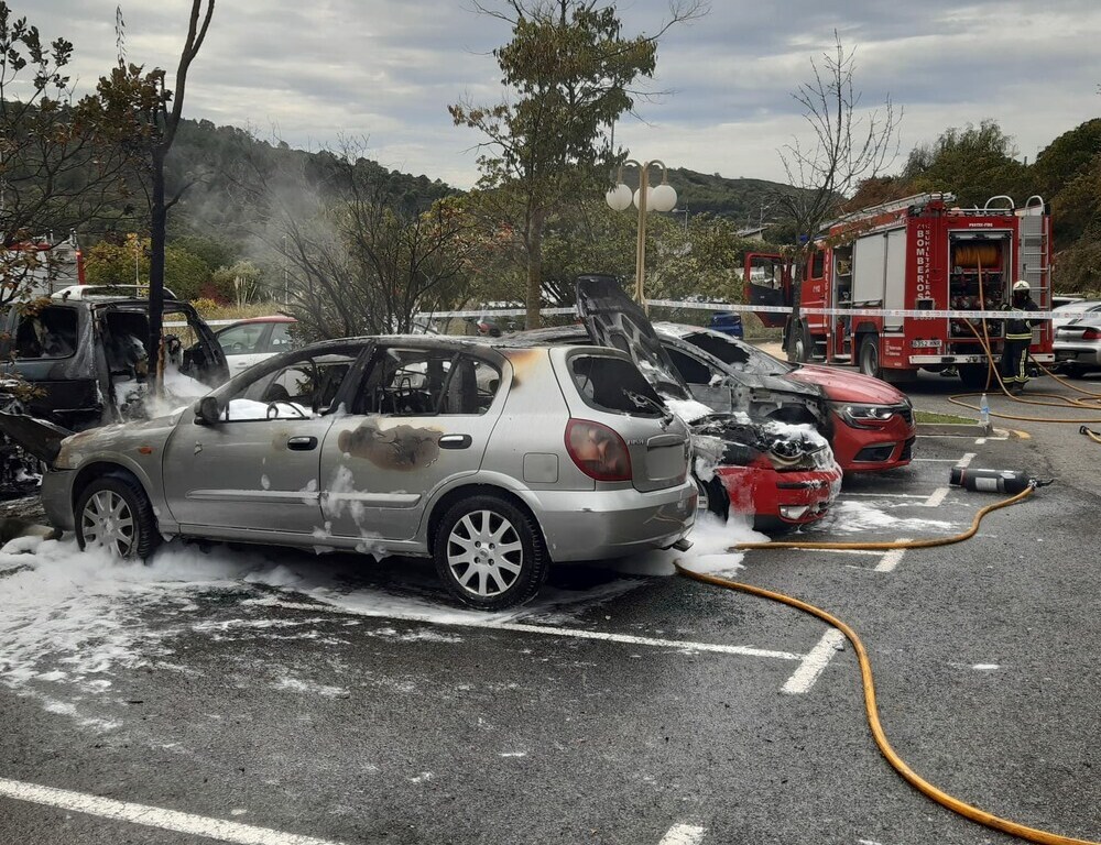 El suceso ocurrió el pasado viernes 1 de octubre, al incendiarse de manera accidental un coche estacionado en el aparcamiento de la residencia Luz de Estella, ubicada junto al Hospital García Orcoyen. El aviso del suceso ha sido a las 14.11 horas. El incendio del vehículo se ha extendido al turismo que se encontraba a su lado, quedando ambos completamente calcinados. El fuego ha afectado, además, a otros tres vehículos colindantes. Hasta el lugar se han desplazado bomberos de Estella y de Cordovilla, Policía Municipal y Policía Foral. Agentes, usuarios y grúas han retirados los coches que se encontraban cerca del incendio para evitar que resultasen dañados.