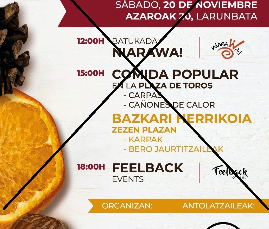 Aseguran que «hasta el final se han comprobado medidas y normativas y finalmente, se ha tomado la decisión por responsabilidad» y recuerdan que «lo hacen además tras la recomendación expresa que se nos ha hecho desde el Instituto de Salud Pública y Laboral de Navarra para suspender los actos programados para ese día, debido al aumento de los casos de COVID-19 en general en Navarra, y concretamente en Estella-Lizarra».