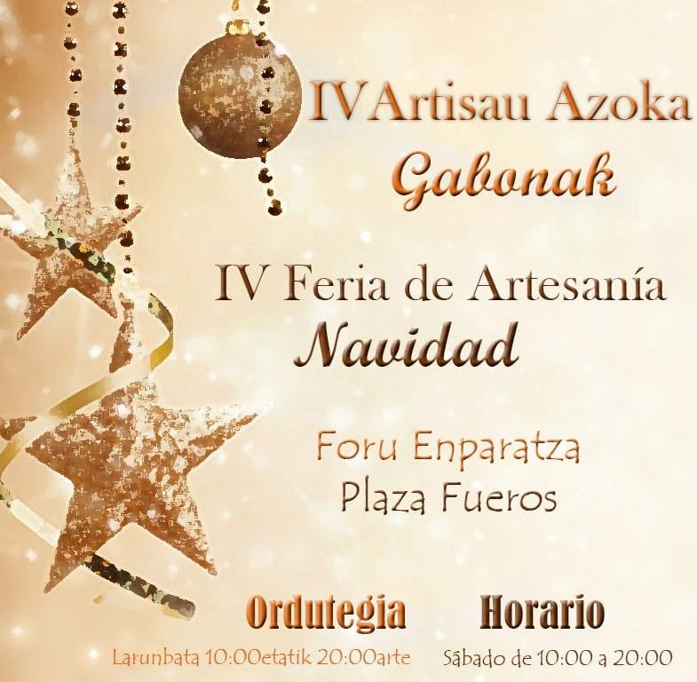 Este fin de semana la Plaza de los Fueros, será el escenario de la cuarta edición de la Feria de Artesanía que organiza el Ayuntamiento de Estella-Lizarra. La feria se desarrollará tanto durante la jornada del sábado como la del domingo, aunque con distintos horarios. El sábado abrirá sus puertas a las 10 de la mañana para cerrarlas a las 20 h, mientras que el domingo el horario será matutino, de 10 a 14 h.