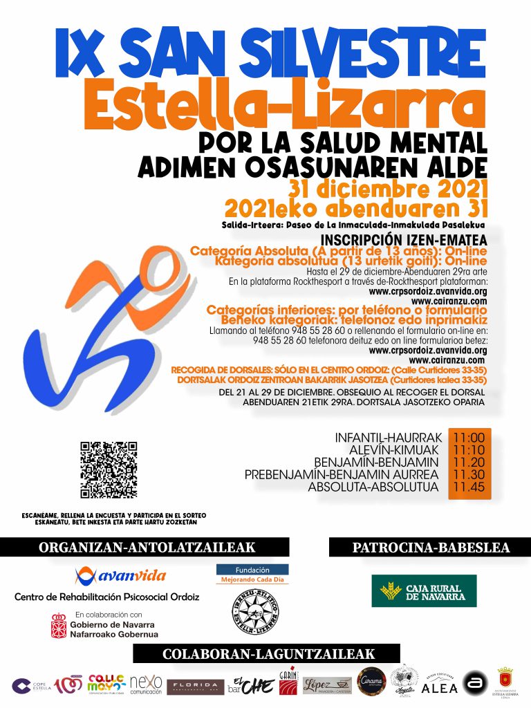 Tras un año de ausencia, el próximo 31 de diciembre se celebrará una nueva edición de la San Silvestre de Estella-Lizarra, que organiza el Centro de Rehabilitación Psicosocial Ordoiz con el apoyo del Club Atlético Iranzu. Caja Rural patrocina una prueba en la que colaboran varios establecimientos y el propio Ayuntamiento.