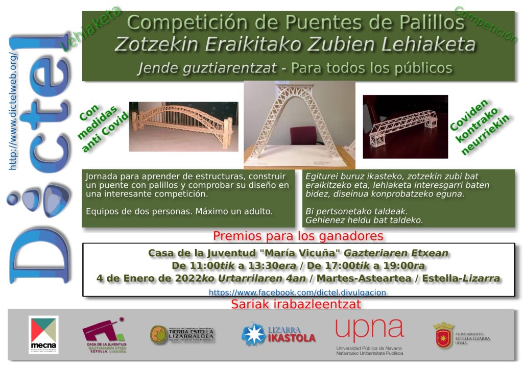 El próximo día 4 de Enero, tendrá lugar en la Casa de la Juventud María Vicuña de Estella Lizarra una competición de Puentes de Palillos de Dientes.