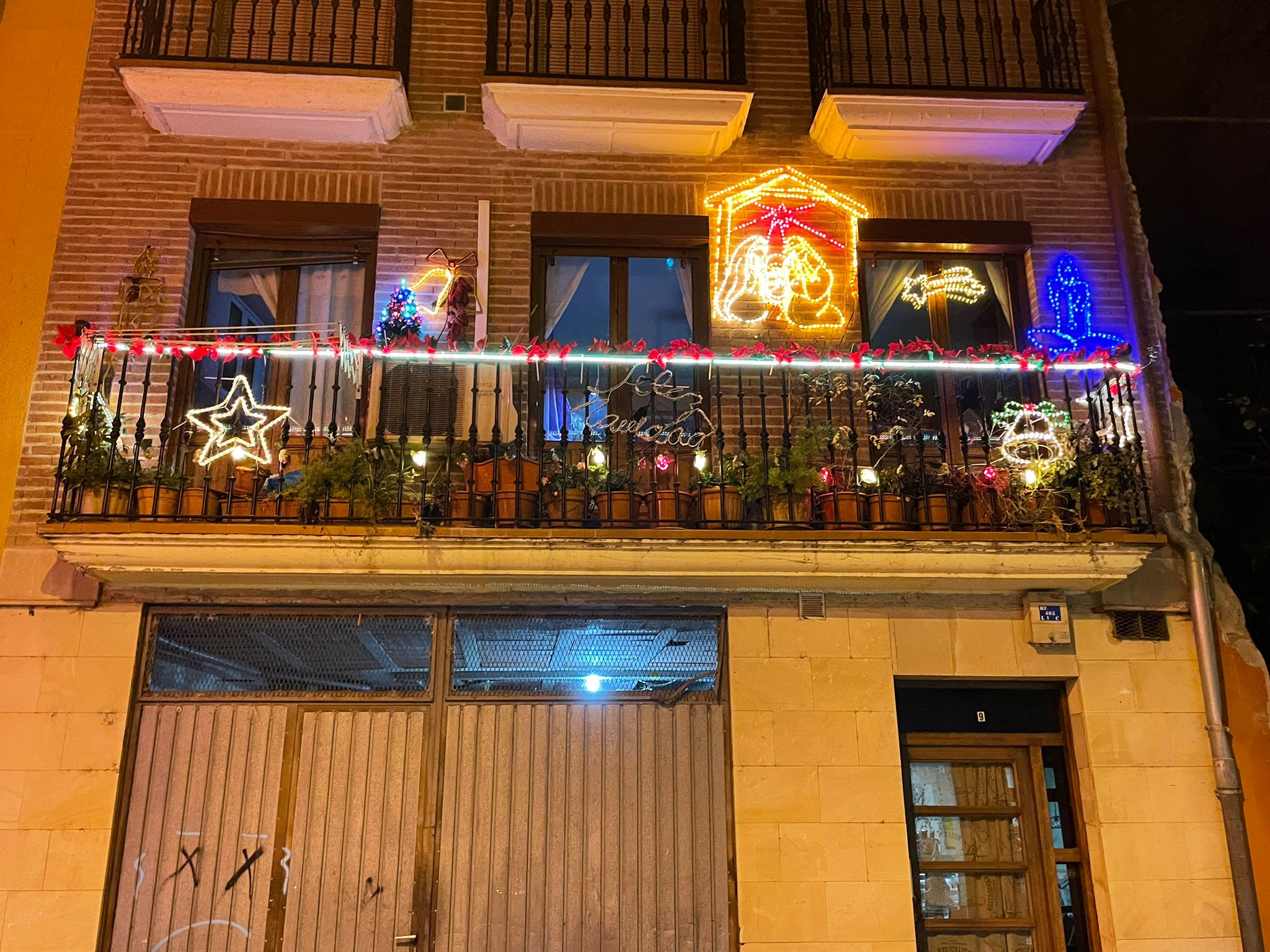 Por su parte, el segundo premio (150 euros en compras) se lo ha llevado José Antonio Ocio gracias a la decoración e iluminación de su balcón de la calle Ruiz de Alda. Estos dos premios los decidió un jurado formado por representantes de la comisión de Servicios.