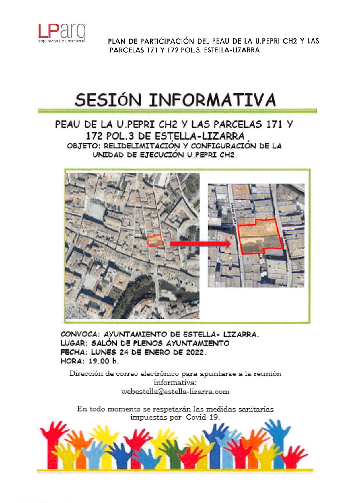 Para ello, se ha convocado una reunión el próximo lunes, día 24 de enero, a las 19.00 horas, en la casa consistorial. El arquitecto redactor de la propuesta, Luis Turiel, ofrecerá los detalles del nuevo planeamiento. Las personas interesadas en asistir tienen que enviar un email a webestella@estella-lizarra.com