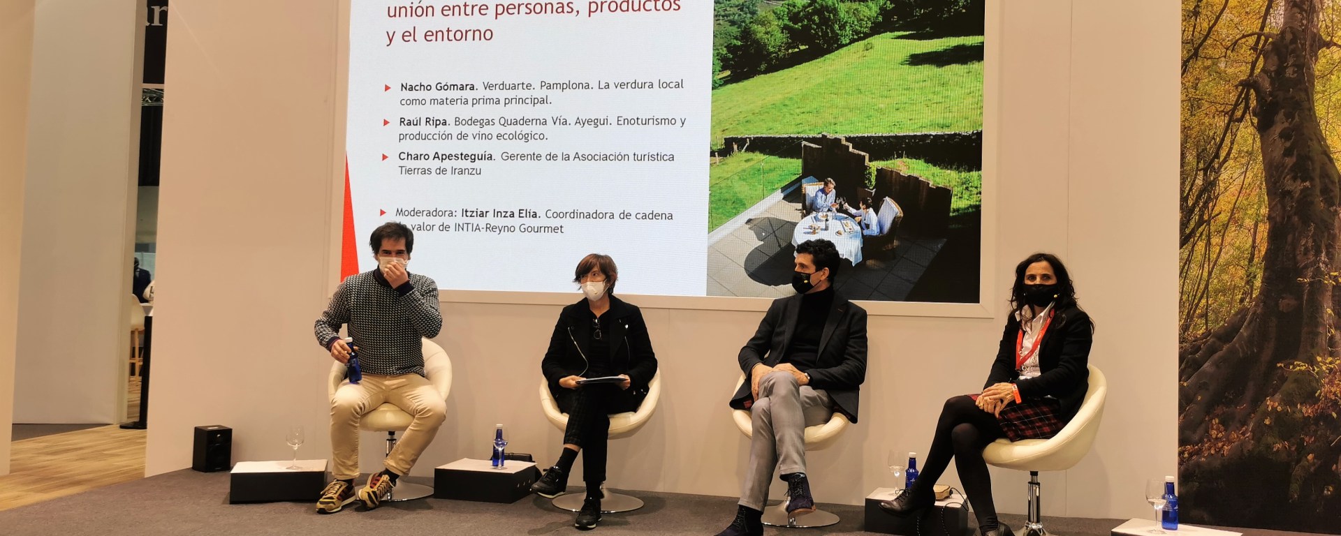 El martes 20 de enero en el stand de Navarra se celebró un coloquio sobre “La gastronomía como nexo de unión entre personas, productos y el entorno», moderado por Itziar Inza de Reyno Gourmet, en la que Tierras de Iranzu estuvo presente representada por su gerente Charo Apesteguia, junto con Nacho Gómara de Verduarte y Raúl Ripa de Quaderna Via.