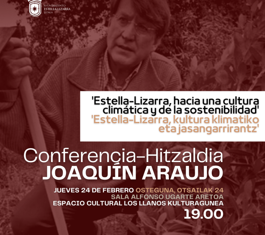 El Ayuntamiento de Estella-Lizarra, a través del Área de Desarrollo Rural y Medio Ambiente, está impulsando un Pacto de Ciudad por el Clima, pacto que va a presentar este próximo jueves, día 24 de febrero, como punto de partida contando con la presencia del conocido pensador y naturalista Joaquín Araujo. La entidad, -que quiere involucrar en esta iniciativa a instituciones, empresas, asociaciones y por supuesto … Continúa leyendo Estella-Lizarra impulsa un Pacto de Ciudad por el Clima
