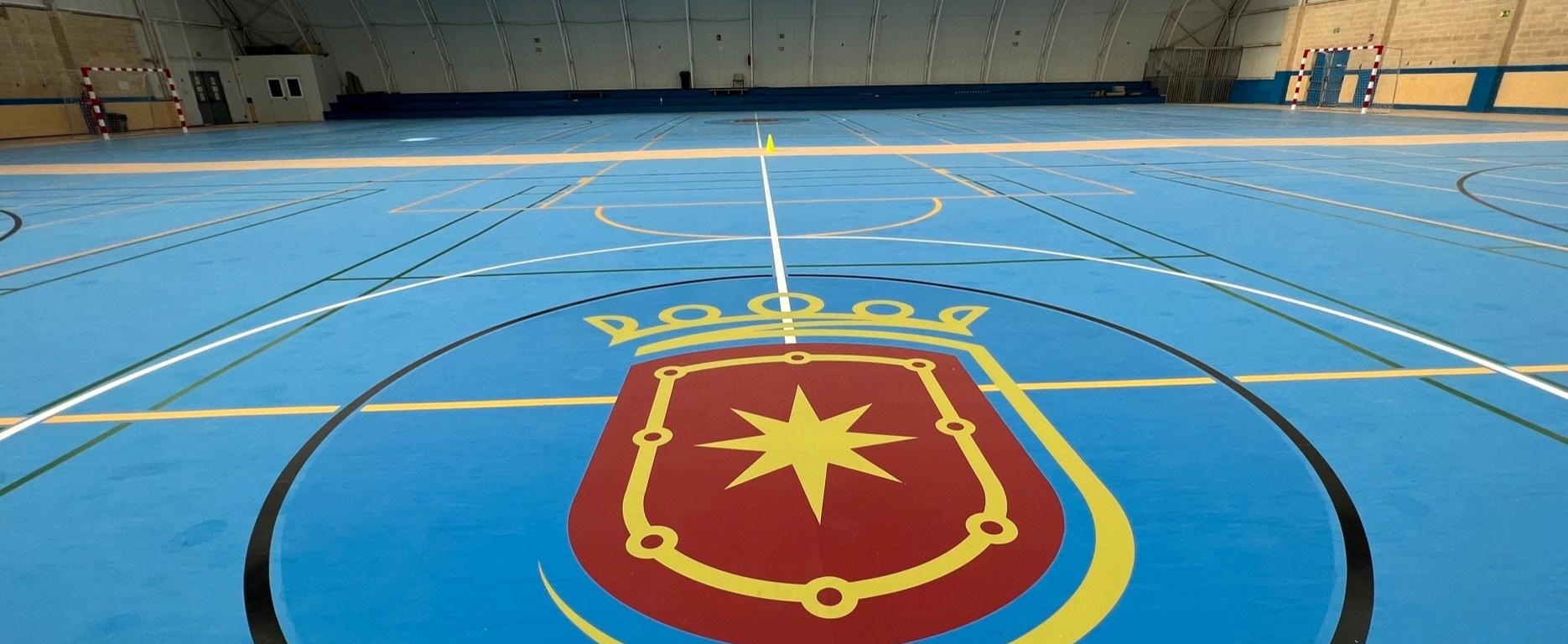 Lo que se ha hecho es colocar un nuevo pavimento deportivo prefabricado, de color azul, a base de caucho natural y sintético, trabajo que se adjudicó a la empresa Mondo SL y que incluye toda la Carpa, es decir, ambas pistas.