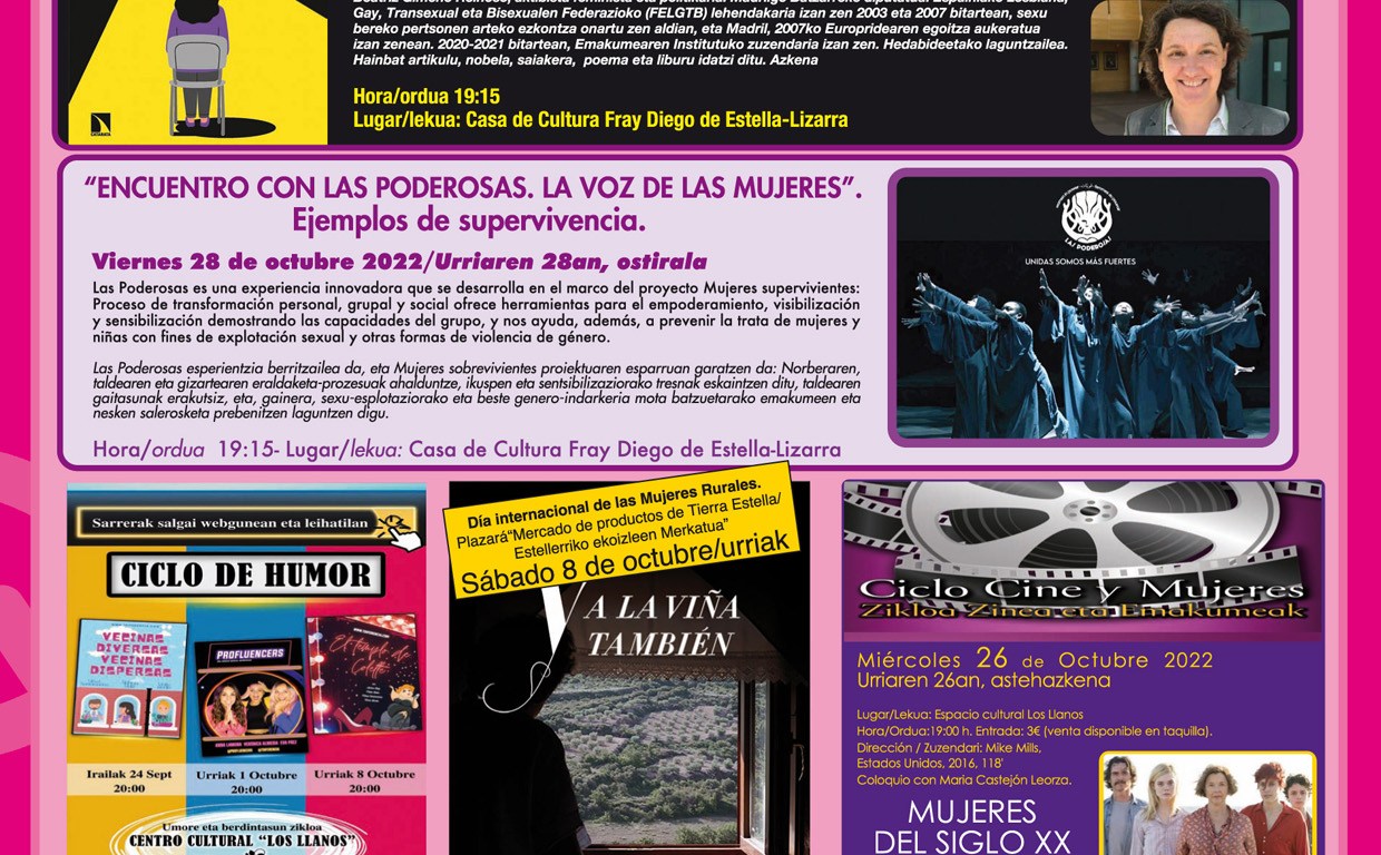 Tras el verano, la Escuela de Empoderamiento del Área de Igualdad del Ayuntamiento de Estella-Lizarra ha regresado en octubre con numerosas actividades, entre ellas, el Ciclo de Humor e Igualdad que ha incluido tres obras teatrales los últimos fines de semana o la presentación del documental sobre ESAIN titulado ‘Y nada más cuenta’.