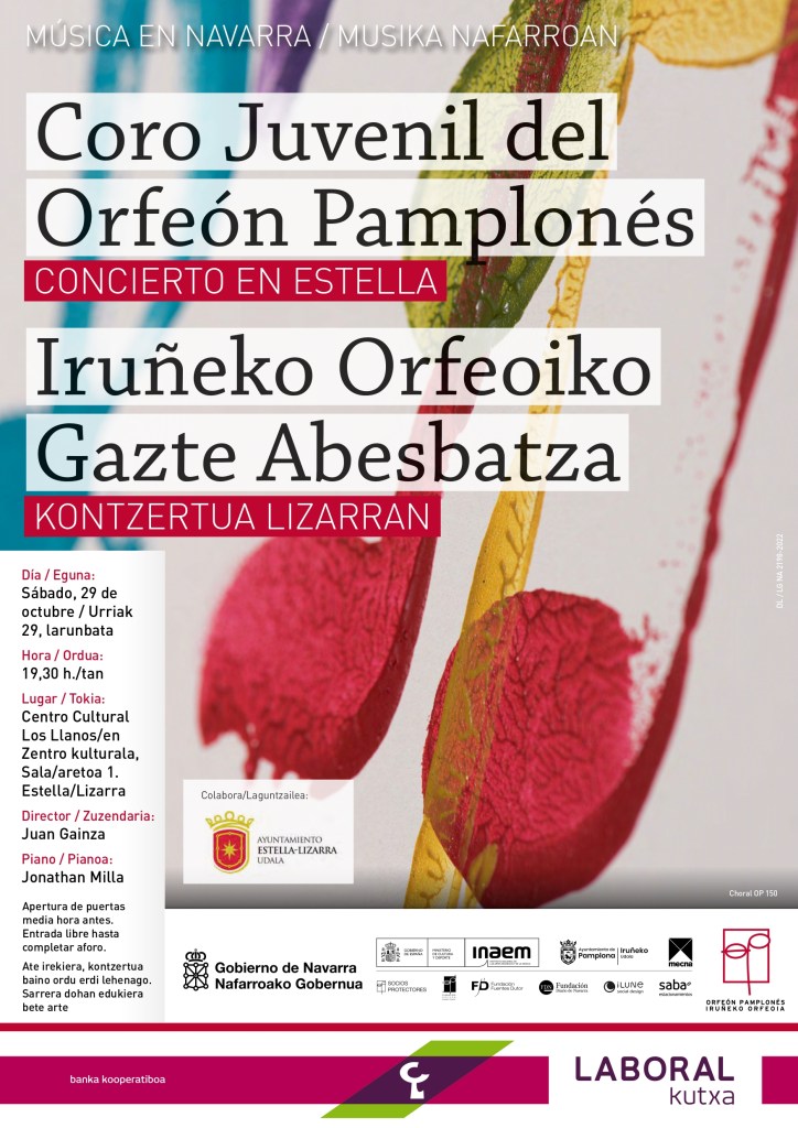 El sábado, día 29 de octubre, actuará en el Centro Cultural Los Llanos, con entrada gratuita hasta completar aforo, el Coro Juvenil del Orfeón Pamplonés.