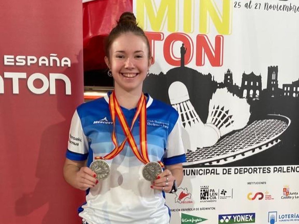 También en la modalidad de dobles junto a su compañera Laura Alvarez del CB Oviedo cuajaron una muy buena actuación. Fueron avanzando en el cuadro venciendo a todas las rivales hasta meterse en la final enfrentándose nuevamente a Nikol Carulla y Lucía Rodríguez (recientes campeonas de Europa junior) ante las que jugaron un primer set muy igualado que perdieron por 21-18 y ya en el segundo les superaron por un 21-14, llevándose el partido. Segunda medalla de plata para el palmarés de la jugadora que aumenta a su vez el palmarés del club en Campeonatos de España.
