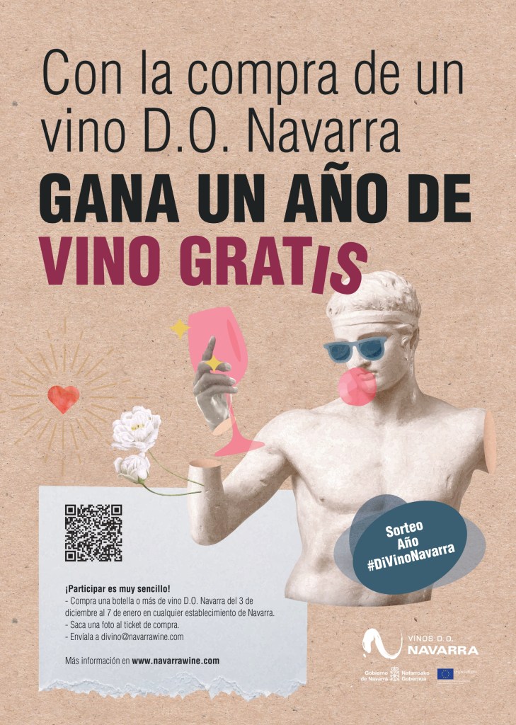 Vuelve el sorteo Año #DiVinoNavarra en el que la Denominación de Origen Navarra regala un año de vino gratis entre aquellas personas que compren una o más botellas de vino D.O. Navarra en cualquier establecimiento de la Comunidad Foral.