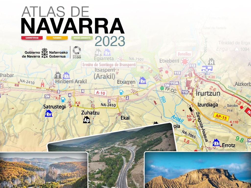 El Departamento de Cohesión Territorial, a través de la Dirección General de Obras Públicas e Infraestructuras, ha lanzado la quinta edición del Atlas de Navarra de 2023. Esta nueva edición contiene información relacionada con carreteras, incluyendo importantes infraestructuras que se han puesto en servicio durante estos últimos años como la transformación de la N-121-A, mejoras en la PA-30 o las nuevas variantes de Tafalla y de Izurdiaga, entre otras, así como con recursos turísticos o de medio ambiente. Se incluyen además nuevos puntos de interés como monumentos de memoria histórica, parkings de autocaravanas, búnkeres, etcétera.