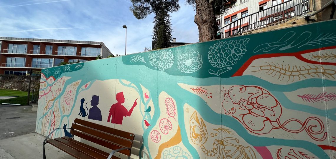 El Ayuntamiento de Estella-Lizarra ha encargado a la artista local Irati Fernández un mural para poner en valor el emblemático pino, de enorme tamaño, que se encuentra en la calle Juan de Labrit. El mural está casi terminado, aunque falta ponerle la guinda con la participación de alumnado infantil de las Aulas de Pintura de Almudí.