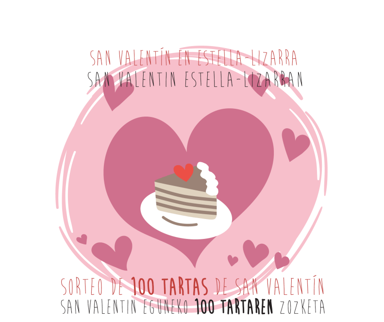 Con el eslogan “San Valentín en Estella-Lizarra”, iniciamos una campaña que se prolongará desde el 6 al 14 de febrero, y con la que se pretende animar las ventas y premiar a nuestros clientes más fieles. La Asociación persigue con el desarrollo de esta campaña, iniciar el año, premiando a aquellos clientes que apuestan por el pequeño comercio, la hostelería y los servicios de Estella-Lizarra. Se establece como premio de la campaña: 100 tartas de San Valentín, de las pastelerías asociadas.