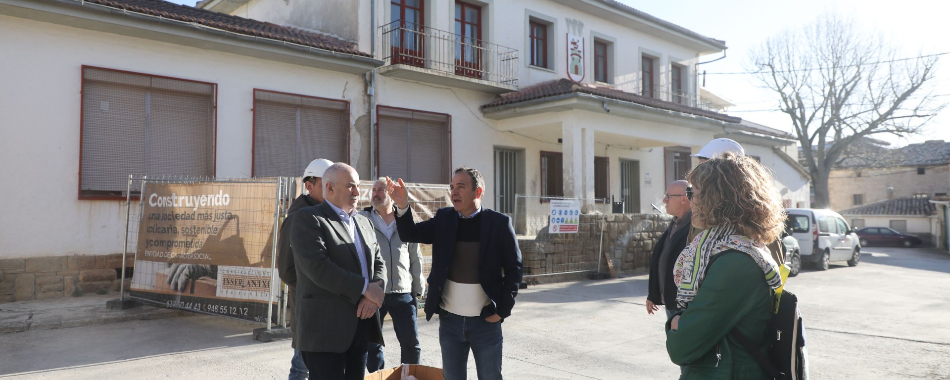 La mitad de los proyectos estará ya en ejecución para el próximo mes de abril y el resto se encuentra en fase de redacción, con la previsión de que los trabajos se inicien a finales de este año, según ha informado el consejero José María Aierdi durante el recorrido que ha realizado a las obras en Oteiza, acompañado del alcalde de la localidad, Rubén Martínez. Han estado presentes también Iñako Les, arquitecto técnico de Nasuvinsa; Javier Ayala, del equipo de arquitectos redactor del proyecto (Lezkairu SISTHEMA S.L.P) y Juan Cruz Arguiñáriz, de la constructora Servicios Inserlantxo, S.L.