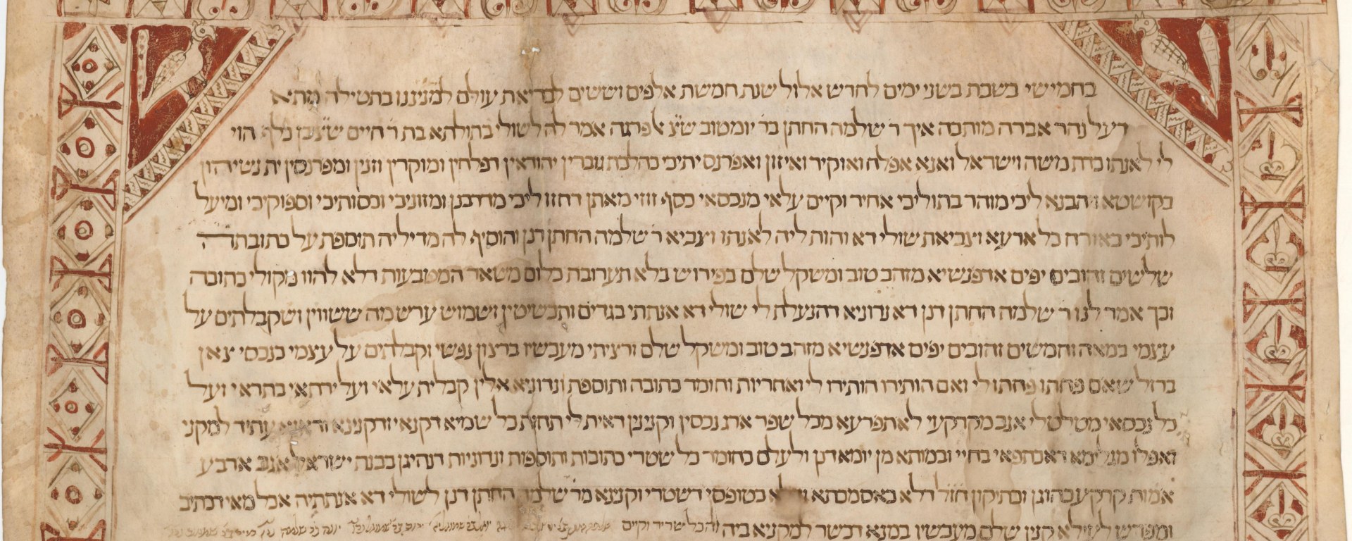 La presencia de comunidades judías en Navarra había sido floreciente durante la Edad Media, época en la que recibieron frecuentemente la protección y apoyo de la Corona. De su vitalidad, muy especialmente en el caso de la judería tudelana, la mayor del Reino, son exponente tanto la existencia de figuras de renombre como el escritor y viajero Benjamín de Tudela, como el legado documental hebraico custodiado en el Archivo Real y General de Navarra, entre el que sobresalen varios “ketubot” (en singular, ketubá), los contratos matrimoniales propios de la religión judía, que se redactaban en escritura hebrea. Precisamente la muestra se abre con la ketubá del enlace entre dos personas judías tudelanas que contrajeron matrimonio en el año 1300.