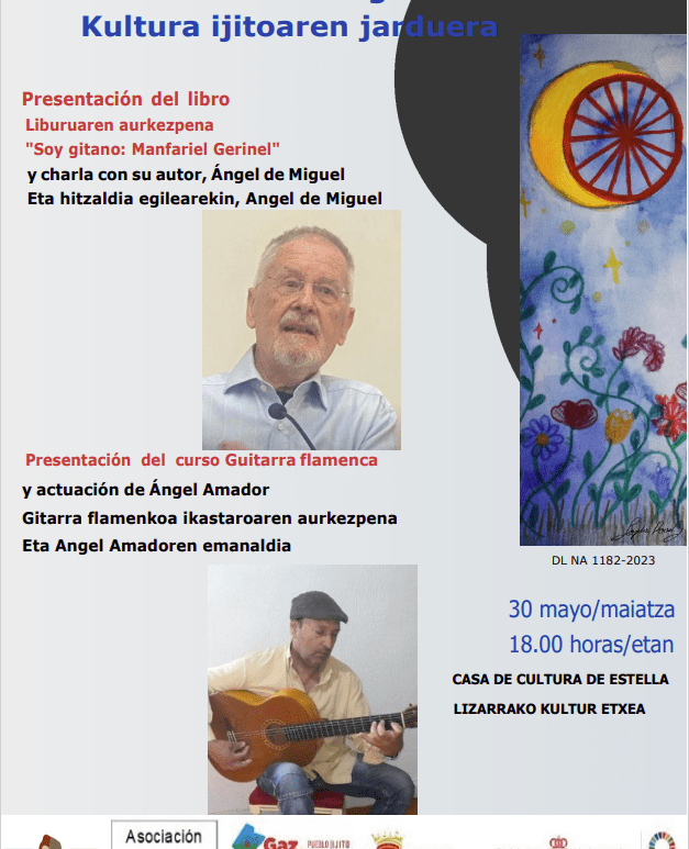 Actividad cultura gitana Con motivo de la celebración del día 8 de abril, día del Pueblo Gitano; y coincidiendo con el 27 de abril, Día de la Comunidad Gitana de Navarra, el día 30 de mayo a las 18:00 se celebrará un acto de presentación de dos propuestas muy interesantes sobre el pueblo gitano en la Casa de Cultura de Estella-Lizarra, abierto a toda la … Continúa leyendo Actividad cultural gitana
