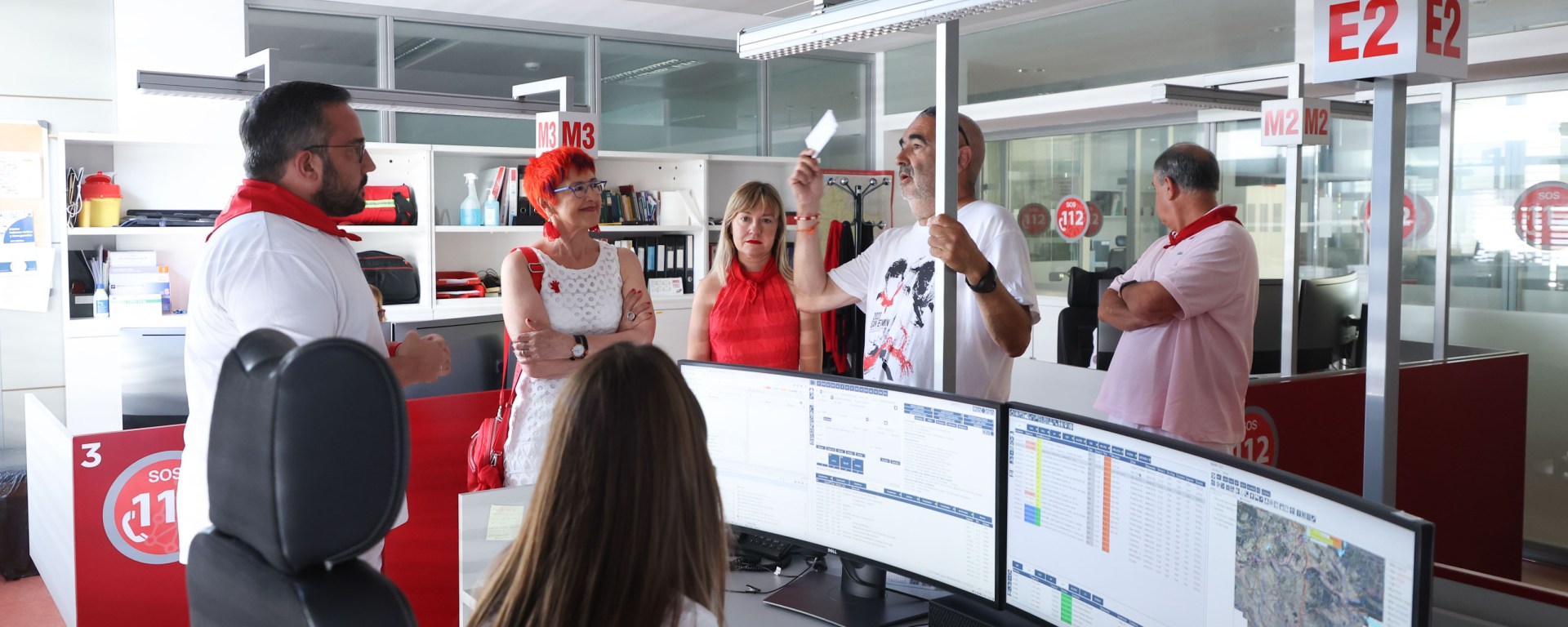 El vicepresidente Remírez y la consejera Induráin han visitado la sala de emergencias SOS Navarra 112 donde también se coordina el dispositivo sanitario del encierro.