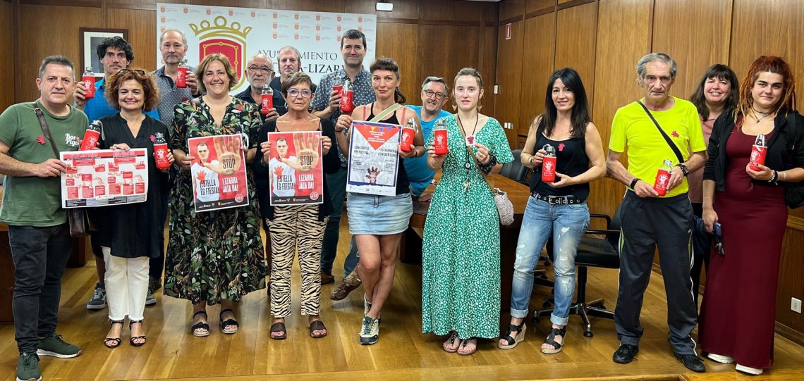 El Ayuntamiento de Estella-Lizarra, como administración pública comprometida, ha presentado esta mañana la campaña ‘Por unas fiestas igualitarias y libres se agresiones sexistas’, promovida un año más desde el Área de Igualdad ante la celebración del 4 al 10 de agosto de las fiestas patronales. Al acto han asistido la alcaldesa, Marta Ruiz de Alda, los concejales María Consuelo Sánchez, Txemi Pérez de Eulate y Blanca Regúlez, así como la técnica de Igualad, Tere Sáez. También representantes de distintos colectivos o personas que han participado en el vídeo de la campaña.