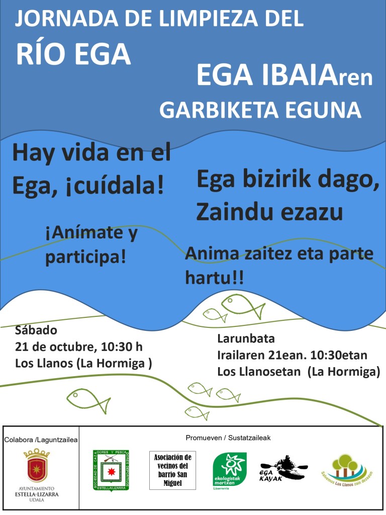 El Ayuntamiento de Estella-Lizarra, en colaboración con distintos colectivos sociales habituales en esta iniciativa, ha promovido para el sábado, día 21 de octubre, una nueva jornada de limpieza del río Ega abierta a toda la ciudadanía.