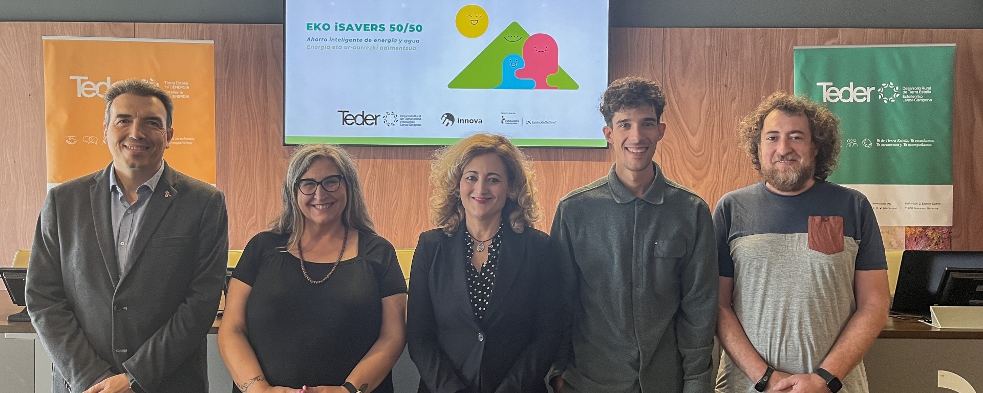 TEDER ha presentado en su sede el proyecto «EKO iSAVERS 50/50», una novedosa iniciativa de ahorro energético y de agua en colaboración con centros educativos y ayuntamientos de Tierra Estella, para el curso escolar 2023/2024. La Presidenta de TEDER, Carmen Puerta, acompañada por el representante de Fundación Caja Navarra, Fernando Urra, los técnicos de TEDER, Mikel Muñoz y David Labeaga, y la Alcaldesa de Allo, Susana Castanera, dio inicio a la presentación. Carmen Puerta destacó la importancia del Servicio Punto Infoenergia de TEDER, ofreciendo orientación gratuita sobre ahorro, eficiencia energética y energías renovables, así como su contribución a la política climática a través del Pacto de Alcaldías.