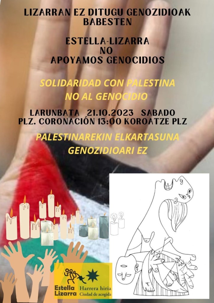 Por ello, nos concentraremos el sábado 21 de octubre a las 13.00 en la Plaza de la Coronación, en Estella-Lizarra, para después en manifestación, y en formato cadena humana, dirigirnos a la Plaza de Los Fueros donde daremos finalización al el acto.