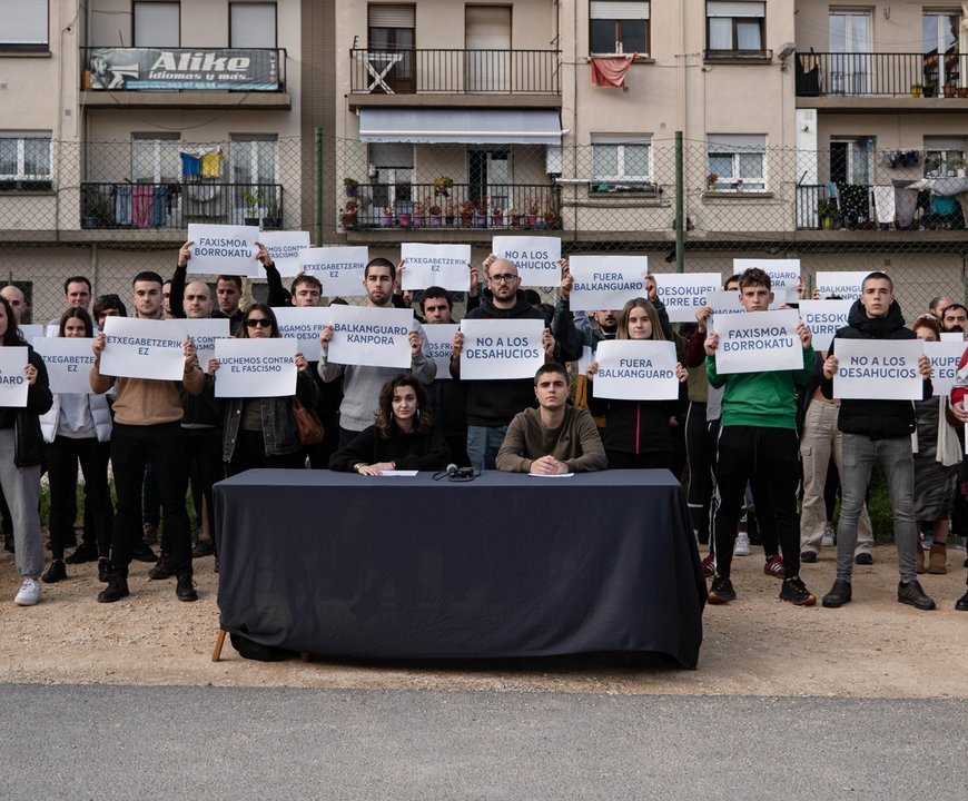 La empresa de desocupación Balkanguard intenta desahuciar a una familia en Estella