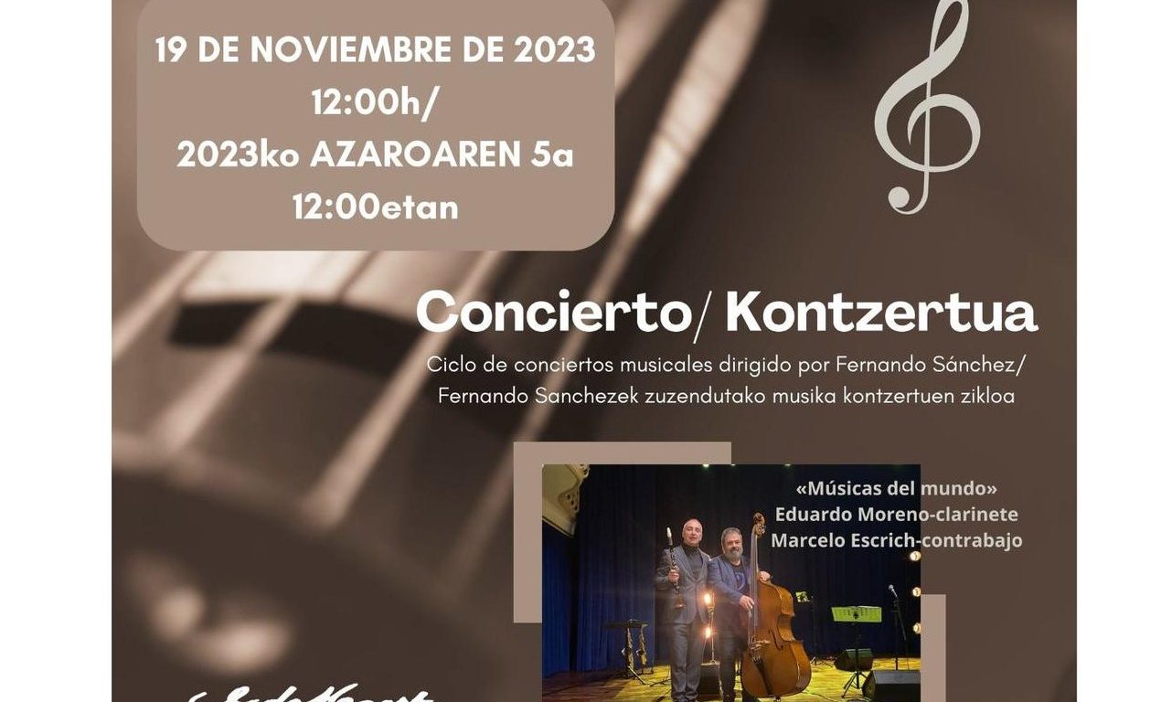 Este domingo 19 de noviembre a las 12:00 horas, tendrá lugar el concierto que contará con; Eduardo Moreno San Pedro al clarinete y con Marcelo Escrich en el contrabajo.