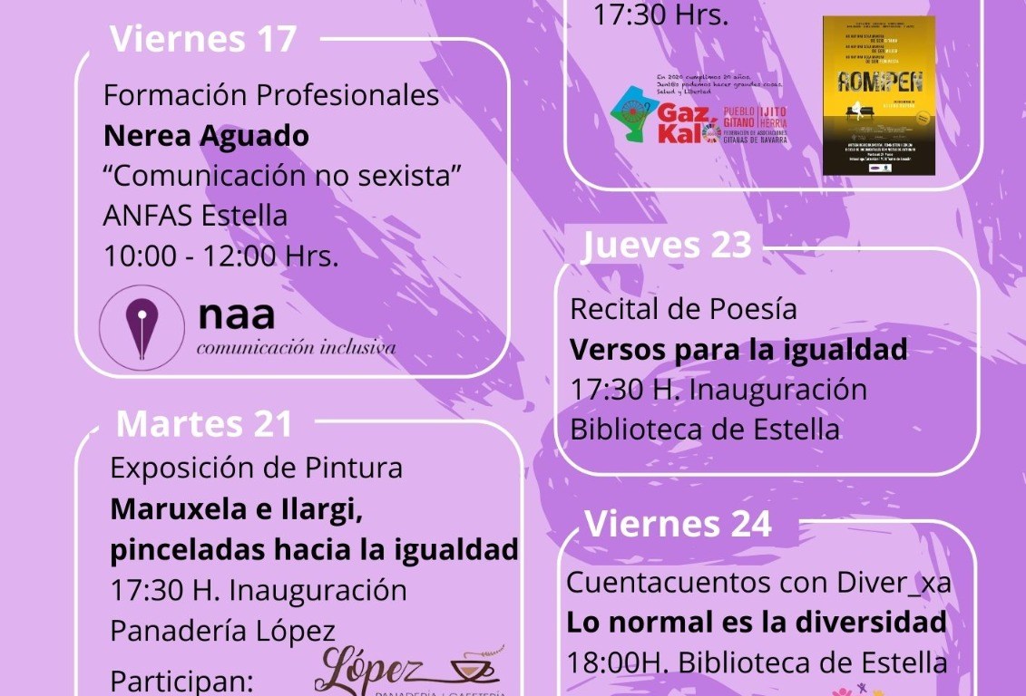 Impulsada por el área de Igualdad del Ayuntamiento de Estella-Lizarra esta es la sexta edición que celebra la entidad. Entre los actos previstos destacan la