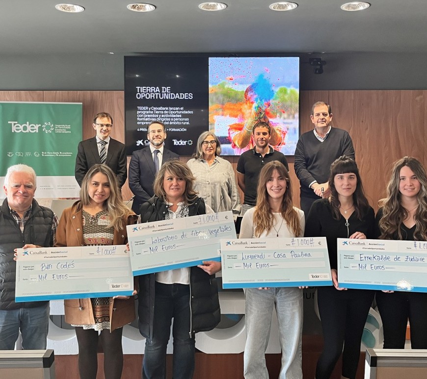 La Asociación TEDER ha concedido 4 premios de 1.000€ cada uno a los 4 proyectos ganadores de la convocatoria “Tierra de Oportunidades”, financiada por Caixabank, y ha presentado un ciclo de píldoras formativas para personas emprendedoras en el marco del mismo proyecto. La Asociación para el Desarrollo Rural de Tierra Estella (TEDER) y CaixaBank han concedido los Premios al Emprendimiento en Tierra Estella, dentro del … Continúa leyendo Entrega de Premios al Emprendimiento en Tierra Estella y presentación de las próximas píldoras formativas prácticas para diciembre y enero