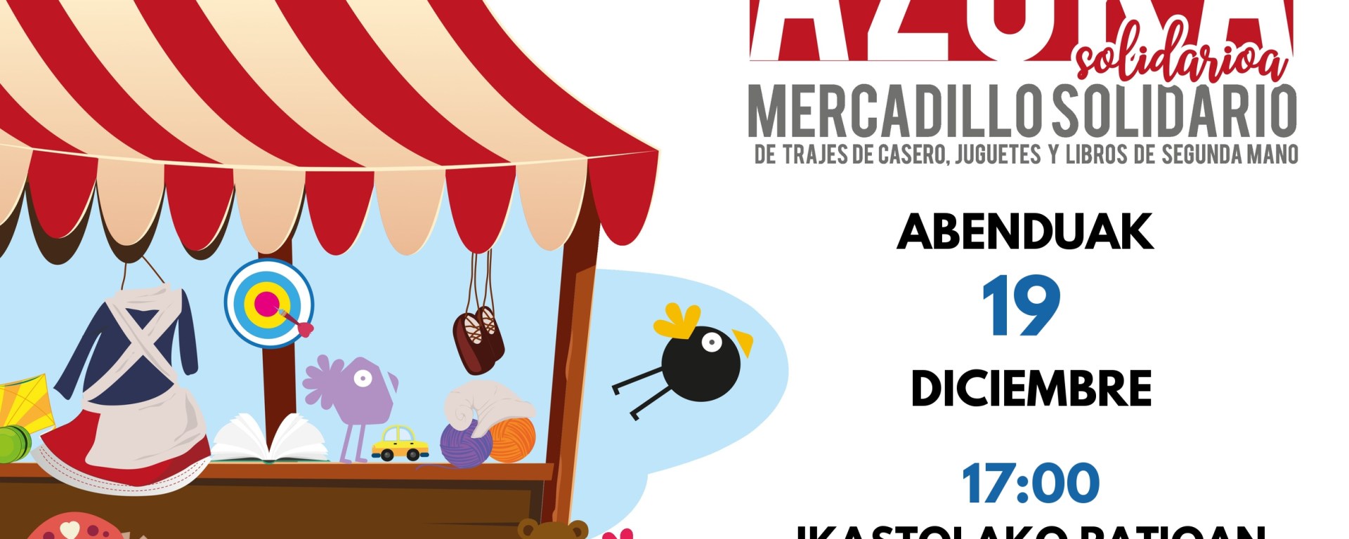 El próximo martes 19 de diciembre a partir de las 17:00 se celebrará en el patio de Lizarra Ikastola el III. mercadillo solidario de juguetes, libros y trajes de casero de segunda mano. Los objetivos de este mercadillo son varios. Por un lado reciclar y dar un segundo ciclo de vida a productos que nuestras familias tienen en casa y que pueden ser muy útiles para otros.