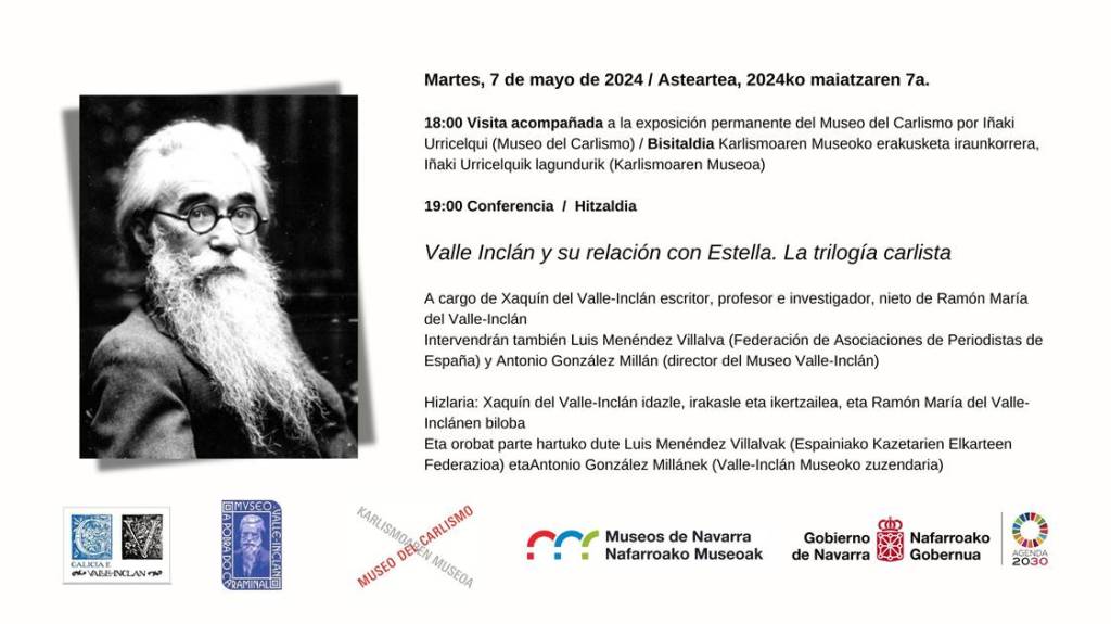 Ese es el título de la charla que el martes 7 de mayo impartirá en el Museo del Carlismo, Xaquín del Valle-Inclán, nieto del dramaturgo, profesor e investigador, quien estará acompañado por Luis Menéndez Villalva (Federación de Asociaciones de Periodistas de España) y Antonio González Millán , Director del Museo Valle Inclán. La cita será a las 18 h.
