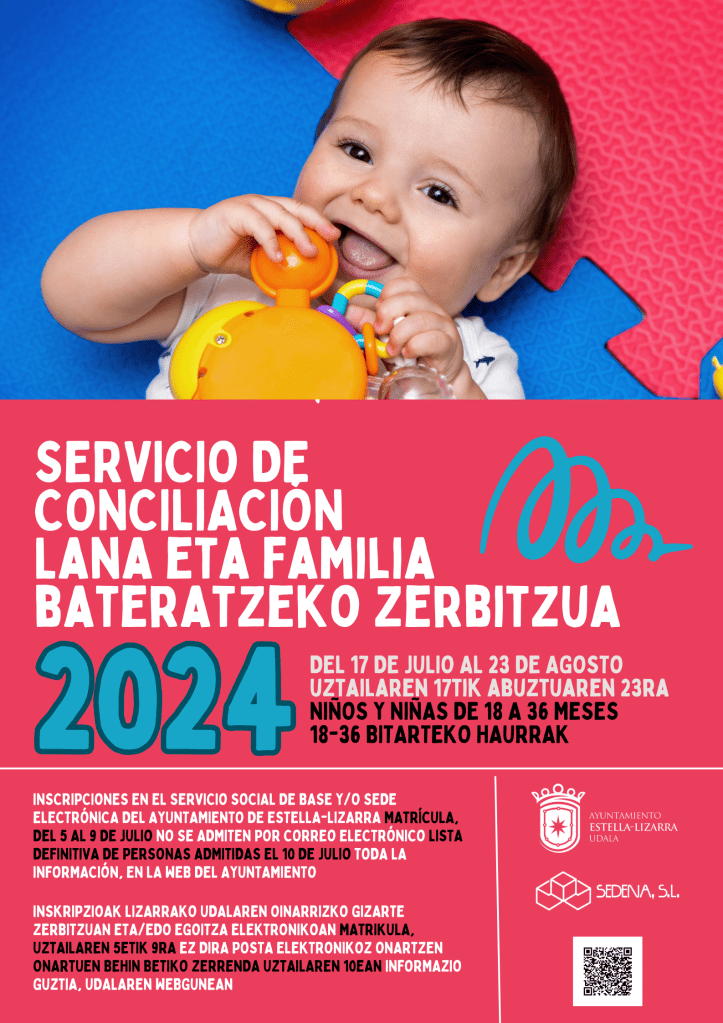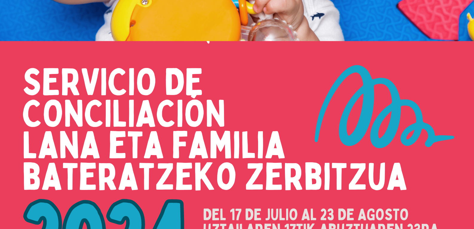 El programa de conciliación familiar es un servicio municipal a través del cual se crea un espacio que facilita el desarrollo integral de niños y niñas, potenciando la utilización de la actividad lúdica como recurso educativo y creativo en el periodo estival. Es un espacio de encuentro para la infancia, que incide en el desarrollo integral de las niñas y los niños. Lugar y Horarios: El Programa de conciliación familiar tendrá lugar en la escuela Infantil Arieta. El servicio está abierto desde las 8:00h hasta las 14:00h.