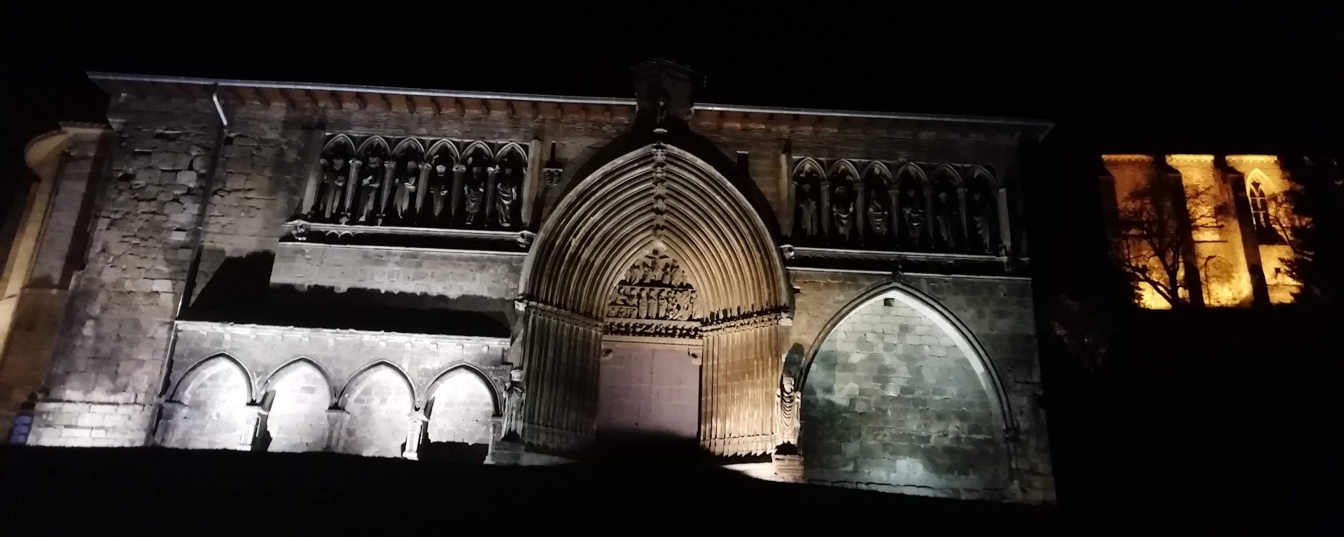 Sin embargo, su magnífica portada gótica, verdadero estandarte del templo, asentó los elementos que sucesivas construcciones habían colocado tras ella y los hizo llegar hasta la actualidad. En el siglo XIV se completa la fachada a la Rúa de Peregrinos, aunque las obras continúan, aunque ya sin seguir el plan original y utilizando materiales menos nobles, como argamasa y ladrillo.