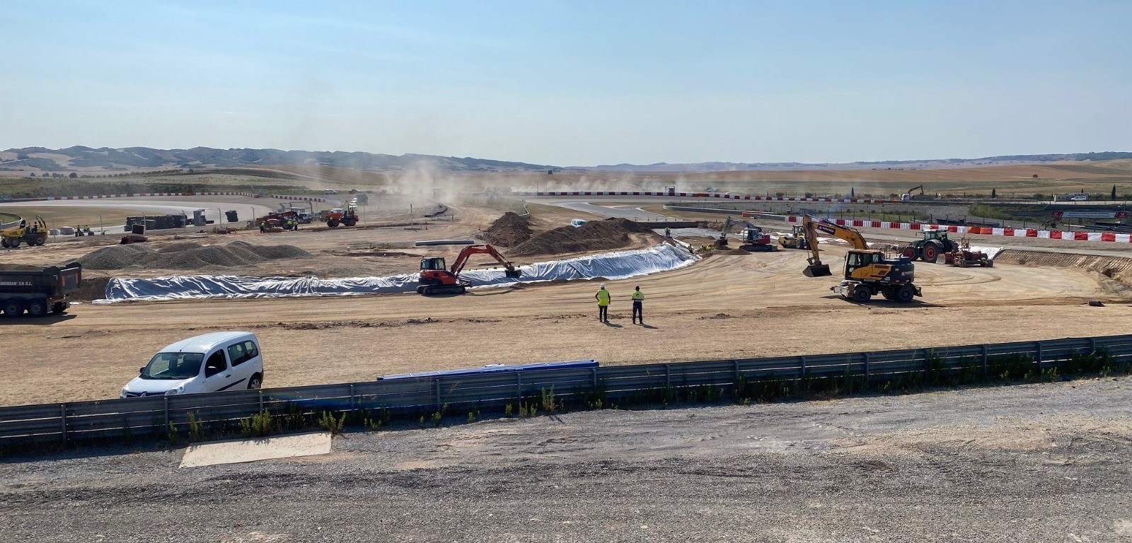 La nueva forma del trazado en un tramo de 750 metros, desde la curva 10 hasta la 15, es ahora claramente visible mientras se compacta la piedra de base, sobre cimientos de hasta 2 metros de profundidad para garantizar la estabilidad de la nueva construcción.