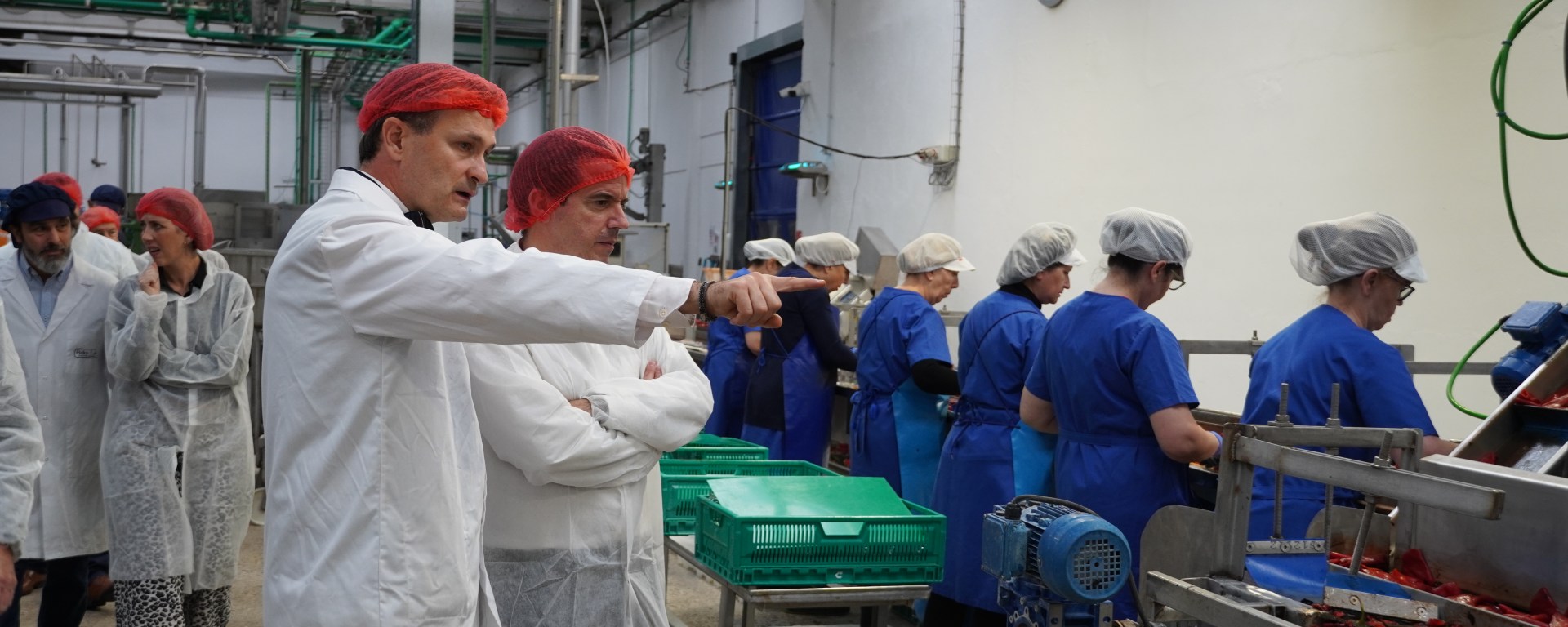 El consejero de Industria y de Transición Ecológica y Digital Empresarial, Mikel Irujo, ha visitado en Lodosa la empresa ‘Pedro Luis’, fabricante de productos con denominación de origen y agricultura ecológica de conservas kilómetro 0.