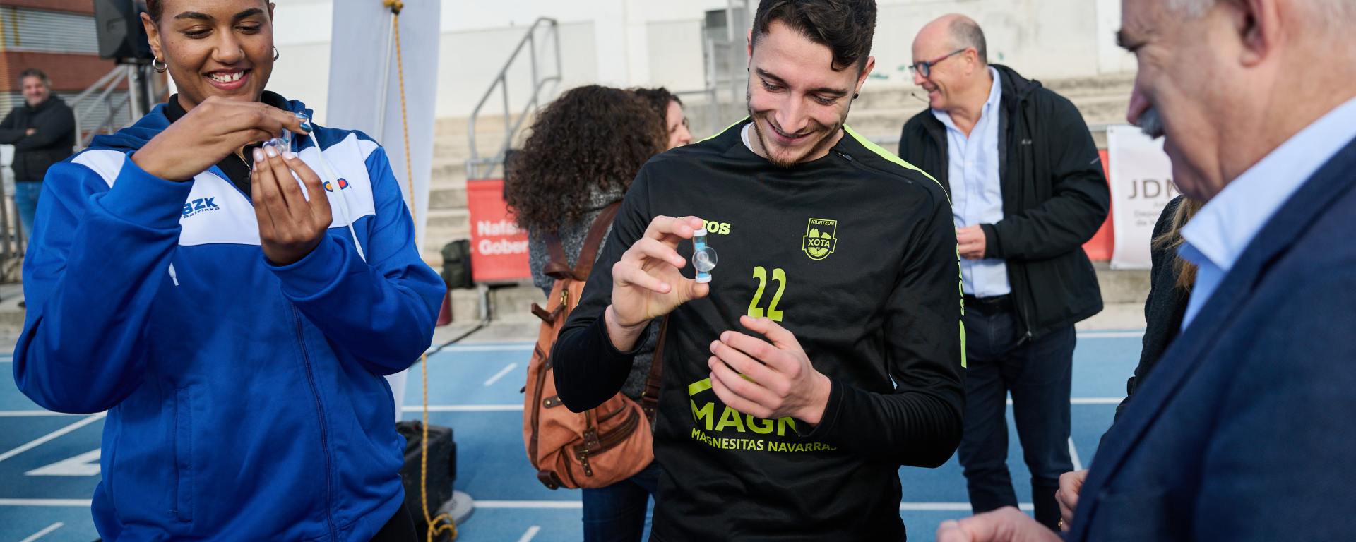 El consejero Aierdi, los y las deportistas y representantes de las distintas entidades deportivas adheridas han explicado los beneficios ambientales que implica, en un contexto de emergencia climática con periodos de sequía cada vez más frecuentes, el ahorro de agua que supondría limitar a 4 minutos –frente a los 10 de promedio que se calcula se emplean actualmente- la duración de cada ducha. Se trata de una acción simbólica, pero con un resultado efectivo, que pretende representar el importante ahorro de agua que pueden suponer pequeños cambios de hábitos cotidianos.