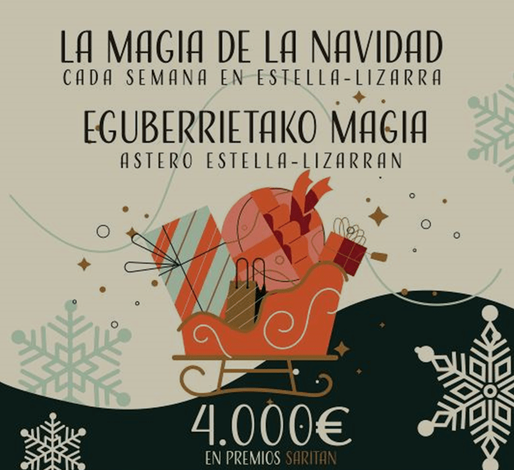 La campaña “La Magia de la Navidad, cada semana en Estella-Lizarra”, es una actuación subvencionada por el Gobierno de Navarra, Departamento de Comercio.