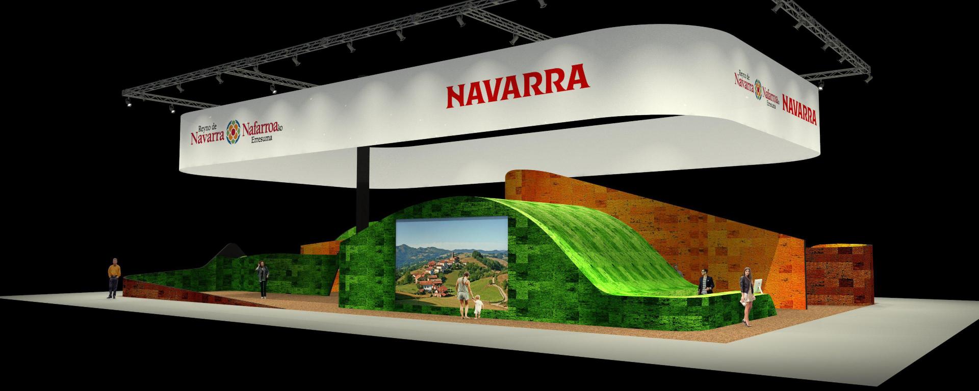 El stand de Navarra estará situado en el pabellón 9 del recinto ferial IFEMA, y presenta una imagen creativa y colorista, que evoca la diversidad de los paisajes forales de norte a sur y de este a oeste. El artífice del diseño es el arquitecto navarro Enrique Kahle Olaso y la empresa constructora será Erakus Arquitectura de Interiores S.A.